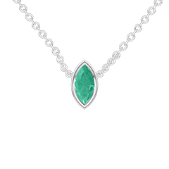 Necklace White gold 9 carats - Emerald Marquise 0.3 Carats - Chain Rolo