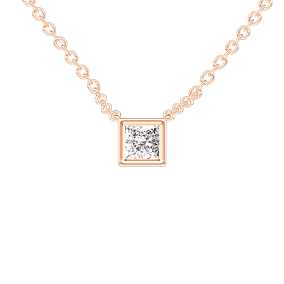 « L'ATELIER » Nº413868Necklace Pink gold 9 carats - Laboratory Diamond Princess 0.3 Carats - Chain Rolo
