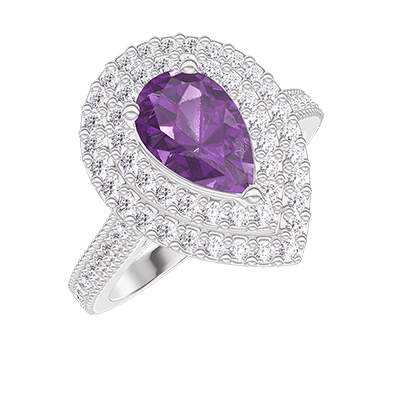 « L'ATELIER » NO. 420534Ring White gold 9 carats - Amethyst Pear 0.5 Carats - Halo Diamond white - Setting Diamond white