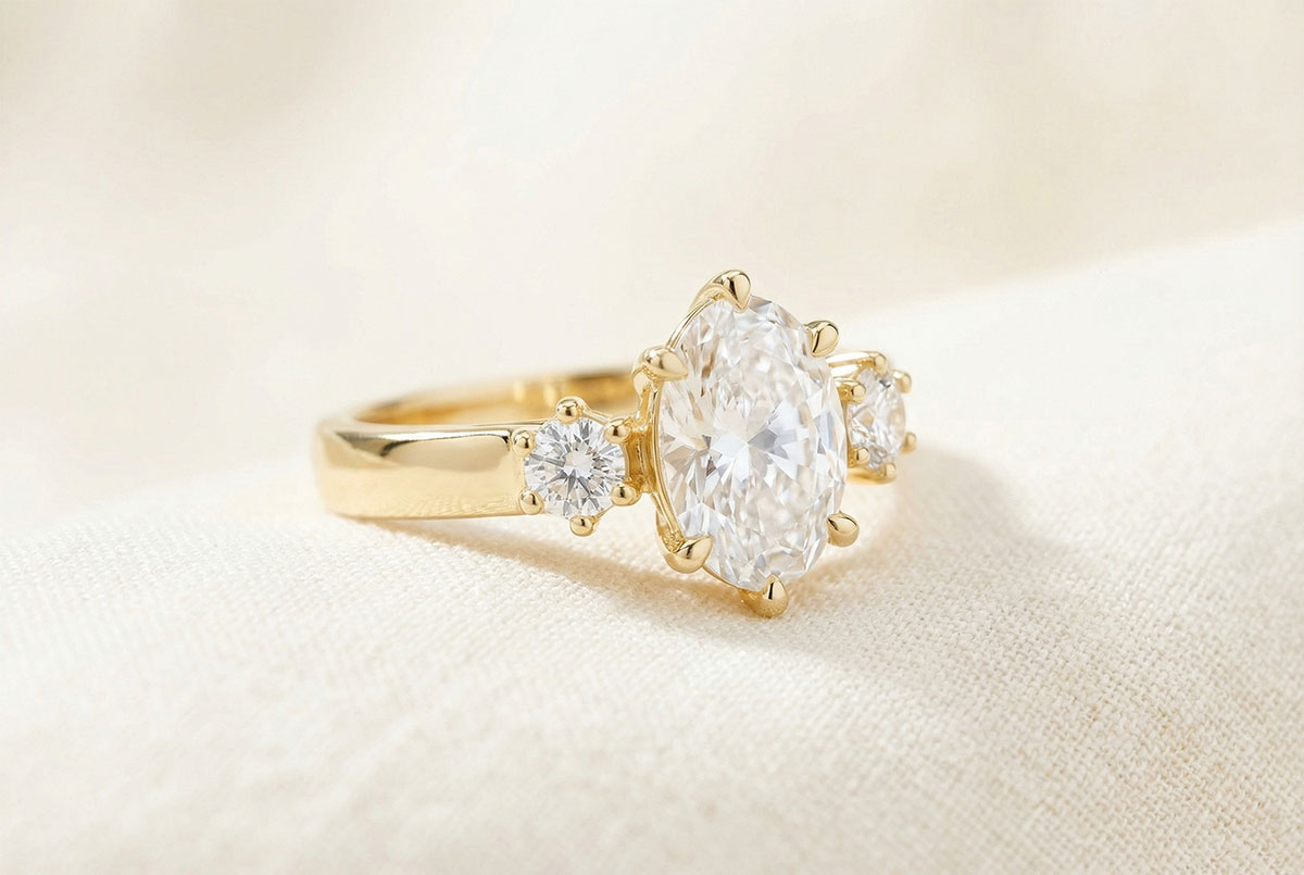 « L'ATELIER » NO. 425981Ring Yellow gold 9 carats - Laboratory Diamond Oval 1 Carats - Ring settings Laboratory Diamond