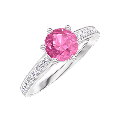 « L'ATELIER » NO. 437653Ring White gold 18 carats - Pink Sapphire round 0.5 Carats - Setting Diamond white