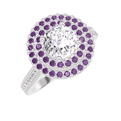 « L'ATELIER » NO. 438035Ring White gold 9 carats - Laboratory Diamond round 0.5 Carats - Halo Amethyst - Setting Laboratory Diamond