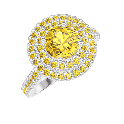 « L'ATELIER » Nº461241Ring White gold 18 carats - Yellow Sapphire round 0.5 Carats - Halo Yellow Sapphire - Setting Yellow Sapphire