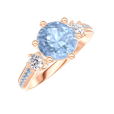 « L'ATELIER » NO. 531563Ring Pink gold 9 carats - Blue Topaze round 1 Carats - Ring settings Diamond white - Setting Blue Topaze