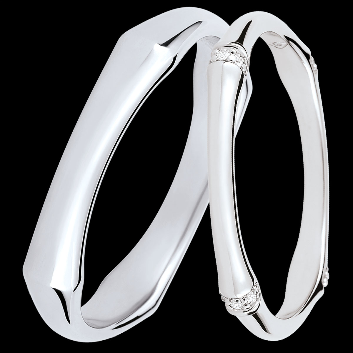 An elegant pair of white gold wedding bands inspired by the natural curves of a bamboo branch.Let these refined rings embody the purity and uniqueness of your bond.