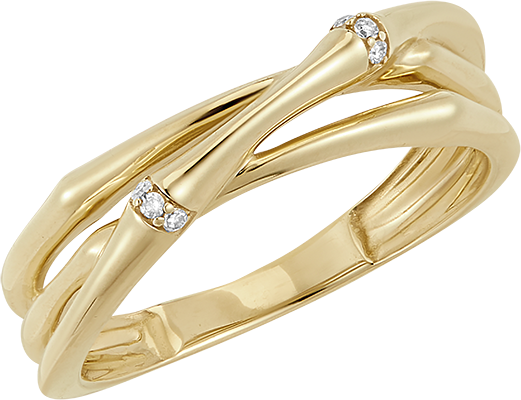 A branch of strong, supple bamboo intertwined with each other is transformed into an eternal ring. The bamboo knots are inlaid with diamonds in gold.