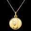 This yellow gold medal depicts the Virgin Mary in a prayerful pose, hands clasped with an expression of serenity and devotion. The simple yet elegant design highlights the gentleness and purity of the image, with delicate relief emphasizing Mary's divine grace. This piece is a symbol of faith, protection, and inner peace, perfect for spiritual occasions such as baptisms, communions, or any sacred moment.