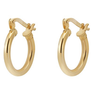 A pair of hoop earrings with a diameter of 10mm. 2mm thick hollow gold wire.
