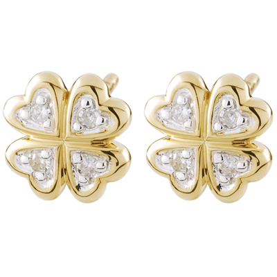 The lustre from the diamonds in these clover-shaped diamond stud earrings , will bring you luck. 8 diamonds : 0.05 carat - White and Yellow Gold (9K Gold = 375/-): 0.7 g. More dimensions