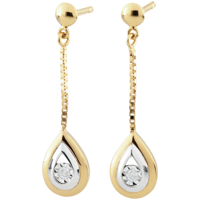 Two delicate white gold and yellow gold tear-drops whose sparkle is a shimmering diamond at their centre.