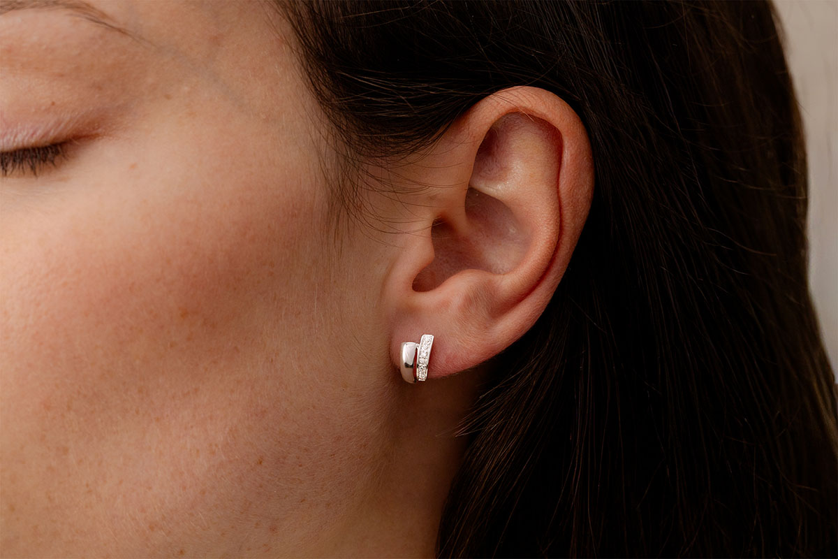 Two white gold bands forming half-moon hoops to combine simplicity and modernity.