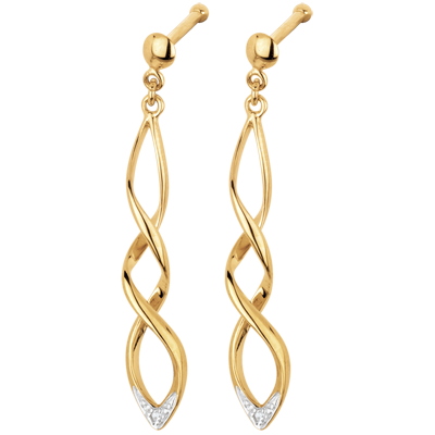 Gold and diamond earrings such as these, shining and illuminated, are a spectacle to behold.2 diamonds : 0.01 carat - Yellow gold (18K Gold = 750/-): 1.45 g.