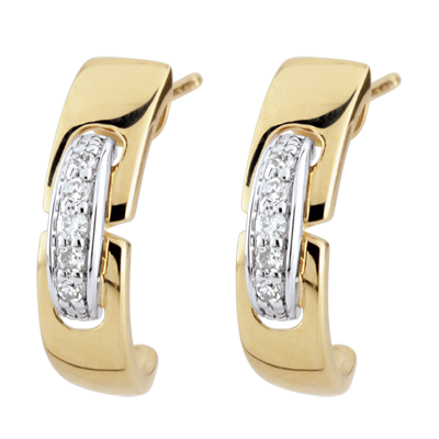 Two yellow gold segments are joined together forever by a gold and diamond link.