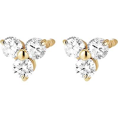 A pair of yellow gold studs set with 3 diamonds. Delicate and sparkling, this design is easy to wear every day.