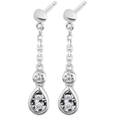 A circle and a drop hang at the end of a chain and each holds a diamond in the middle.6 diamonds : 0.06 carat - White gold (18K Gold = 750/-): 1.40 g.