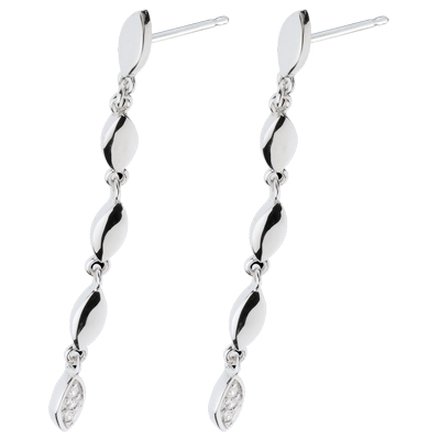 These two white gold and diamond vines gently drop down and sway alongside your face.