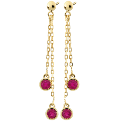 A pair of rubies is radiantly and delicately balanced.