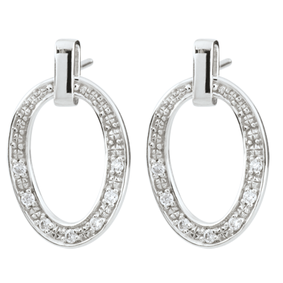 Two ovals in gold diamond ribbon are captured in a curved and fixed motion in stud earrings. Subtle and elegant, they shimmer with every movement.
