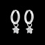 A single white gold hoop earring with a diamond studded star shaped charm. Charm attach dimensions : 3,1m diameter.