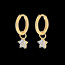 A single yellow gold hoop earring with a diamond studded star shaped charm. Charm attach dimensions : 3,1mm.