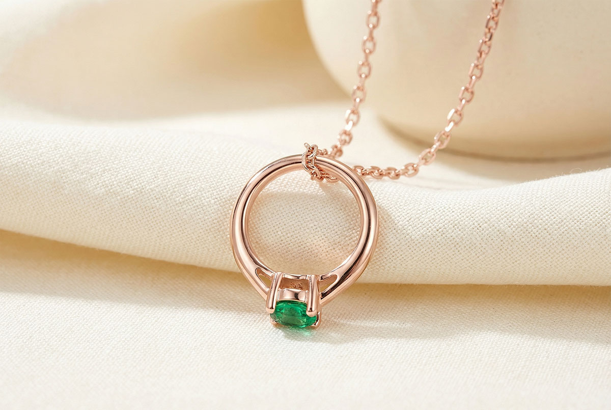 Pendant "Cutie Ring" - 18k rose gold and synthetic emerald