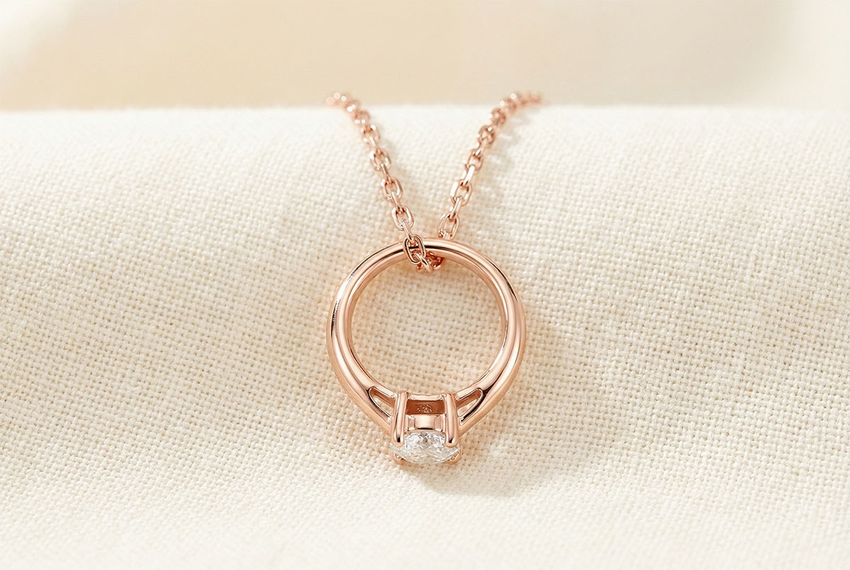 Pendant "Cutie Ring" - 9k rose gold and synthetic diamond