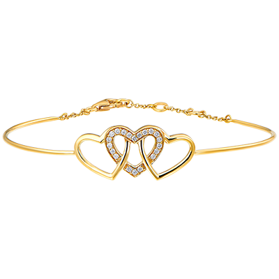 Precious Secret Bangle Bracelet - Interlaced Hearts - yellow gold 9 carats and diamonds