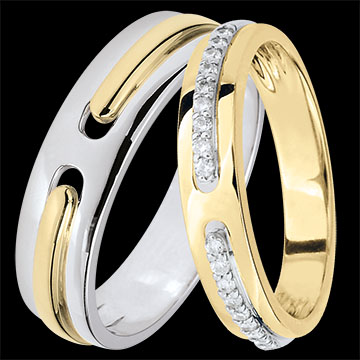 Promesse Duo Wedding Bands – Yellow and White Gold & Diamonds – 9 Carat