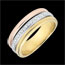 The three golds combine yellow, white, and rose gold to symbolize harmony and complementarity, reflecting the union of two beings.