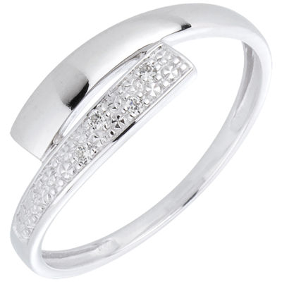 A luminous gold and diamond movement forming a fine and elegant multi stone ring.4 diamonds : 0.02 carat - White gold (18K Gold = 750/-): 1.35 g.