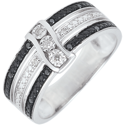Ring Clair Obscure - Twilight - white gold, white and black diamonds - 9 carat