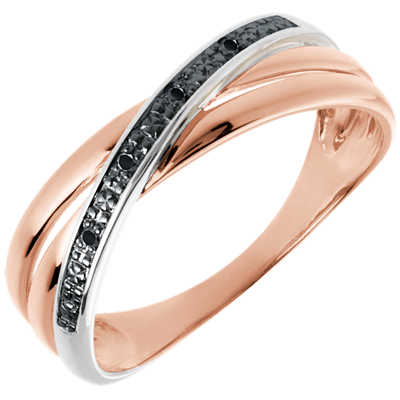 A frame in rose gold volutes and is highlighted by a ring paved with 4 black diamonds