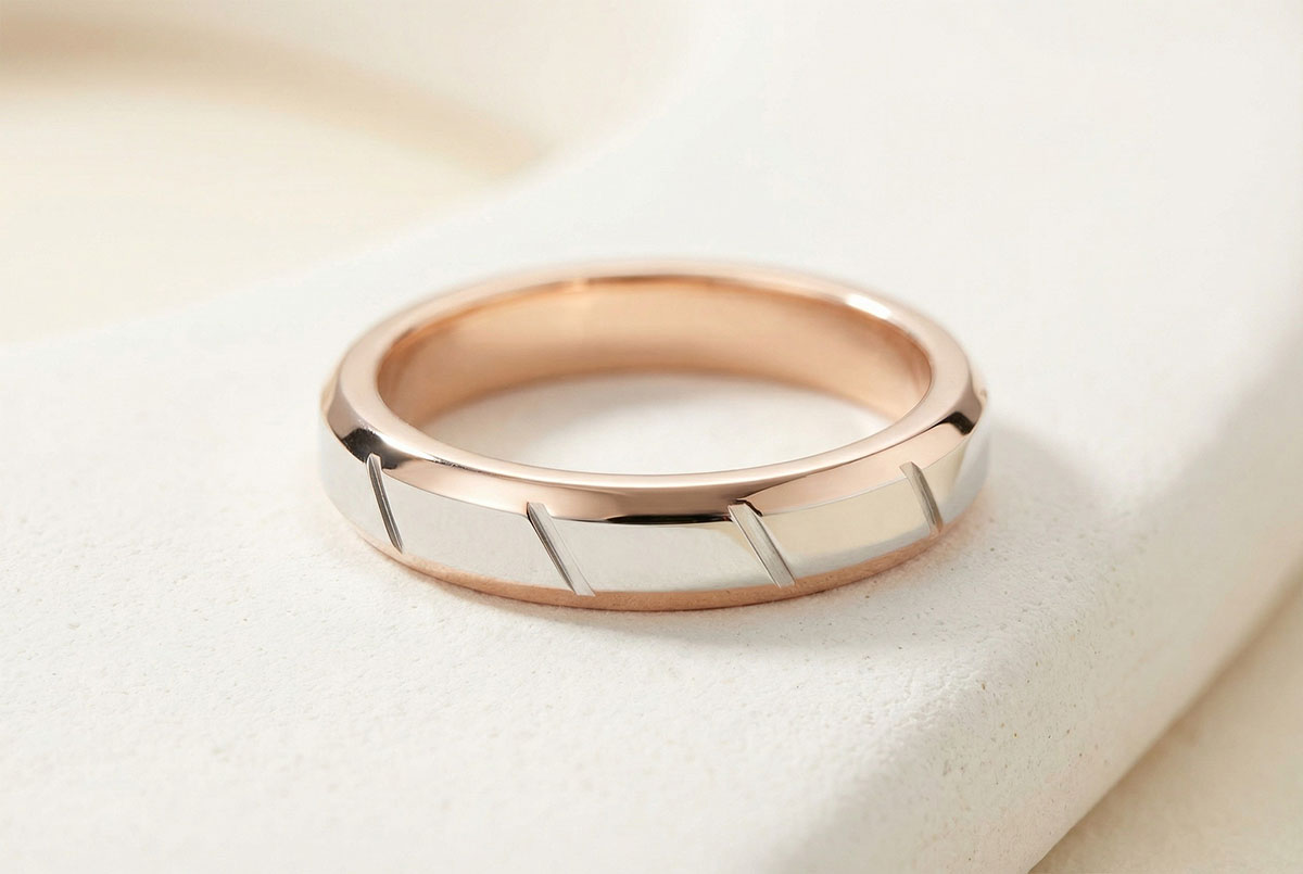 Rose Gold and White Gold Magnus Wedding Band - 18 carats