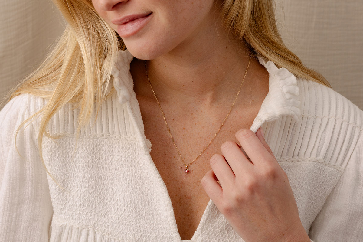 Rubelya Necklace – 9 Carat Yellow Gold, Synthetic Ruby and Diamond