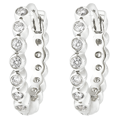 A circle of white gold pearls set with diamonds. A pair of femine, classic yet original hoops. 14 diamonds : 0.07 carat. 14 diamonds : 0.07 carat - White gold (9K Gold = 375/-): 1.1 g. More dimensions
