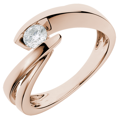 Solitaire Ring Precious Nest - Wave - Pink gold - 0.27 carat diamond - 18 carats