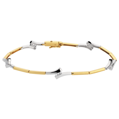 A yellow gold bracelet interspersed with white gold sections which hold diamonds.