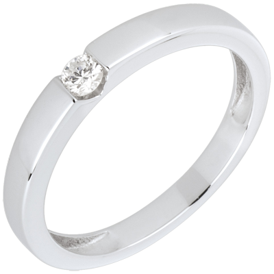 A white gold ring with minimalist design, embellished with a central solitaire.