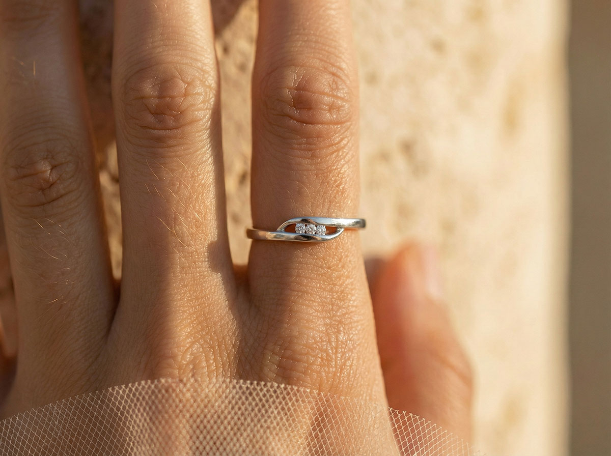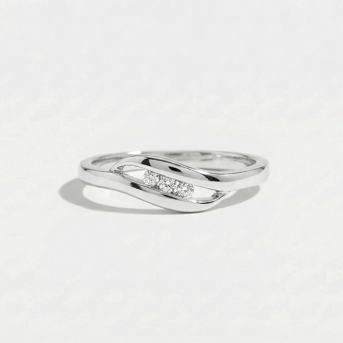 - Delicate setting showcasing three white diamonds of HSI quality