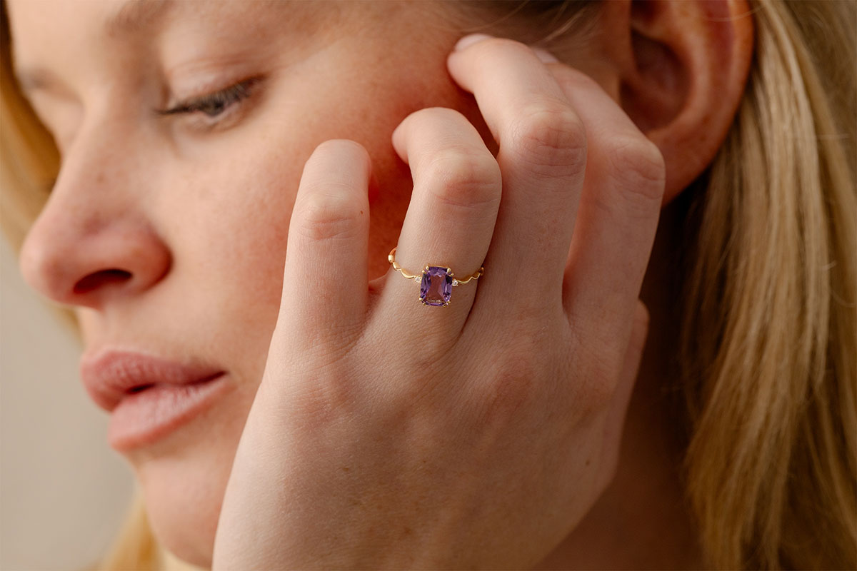 Vespera Ring – 9ct Yellow Gold, Amethyst and Lab-Grown Diamonds