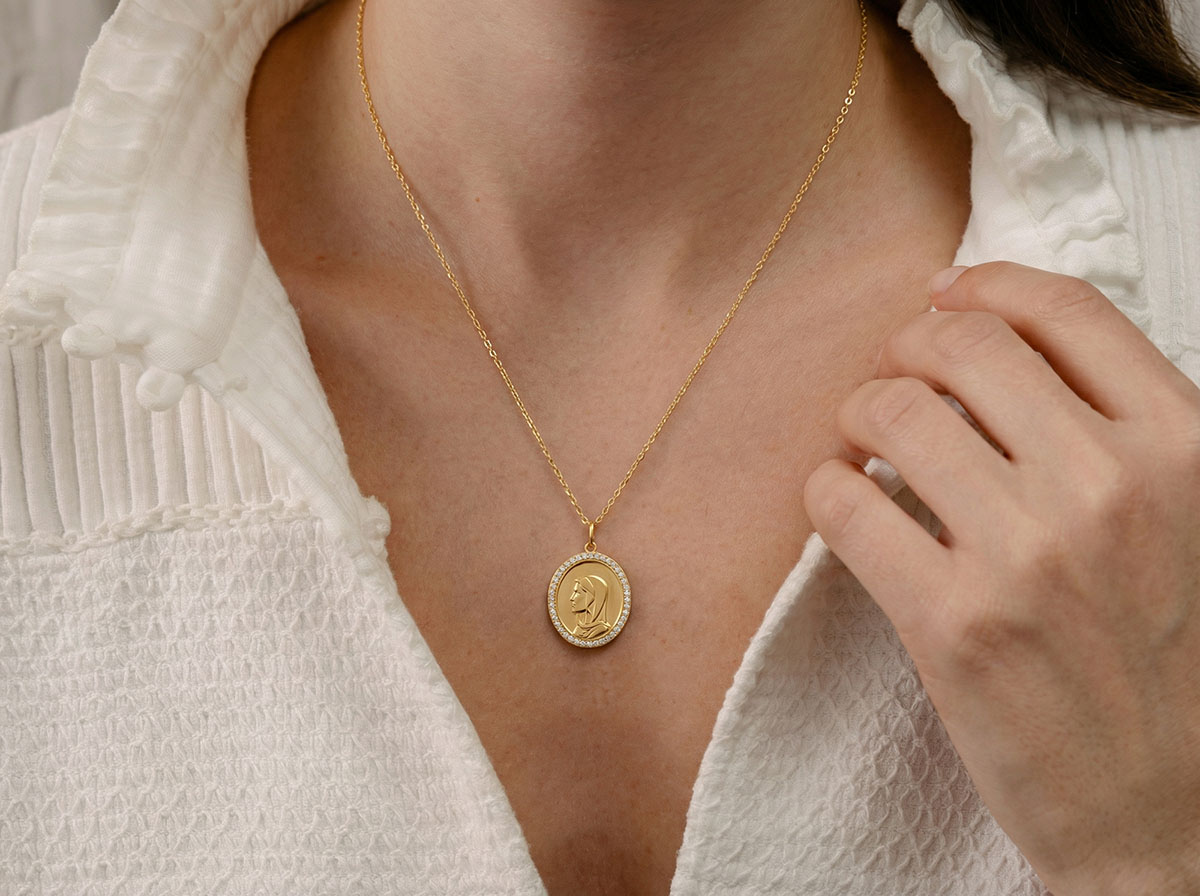 Virgin Mary Medallion – 9ct Yellow Gold & Lab-Grown Diamonds