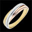 - Three intertwined bands in 18K yellow, white, and rose gold