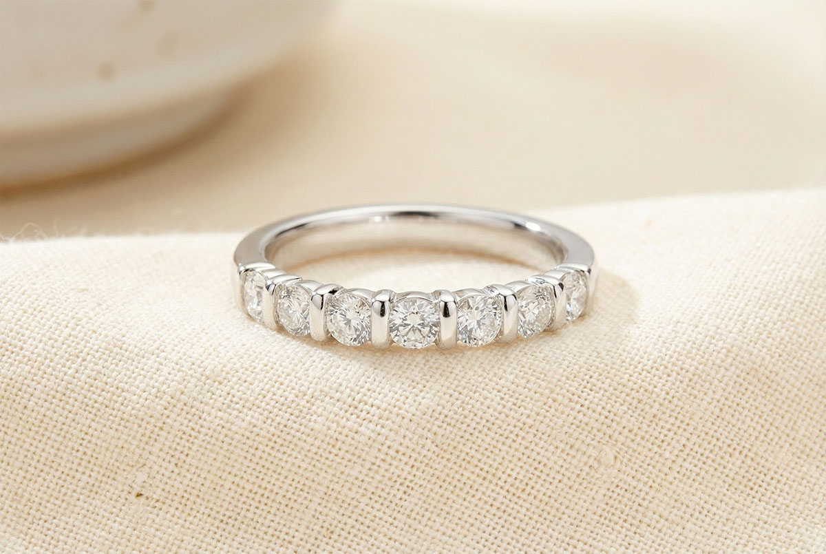 Wedding ring white gold semi paved-bar prong setting - 0.65 carat - 8 diamonds