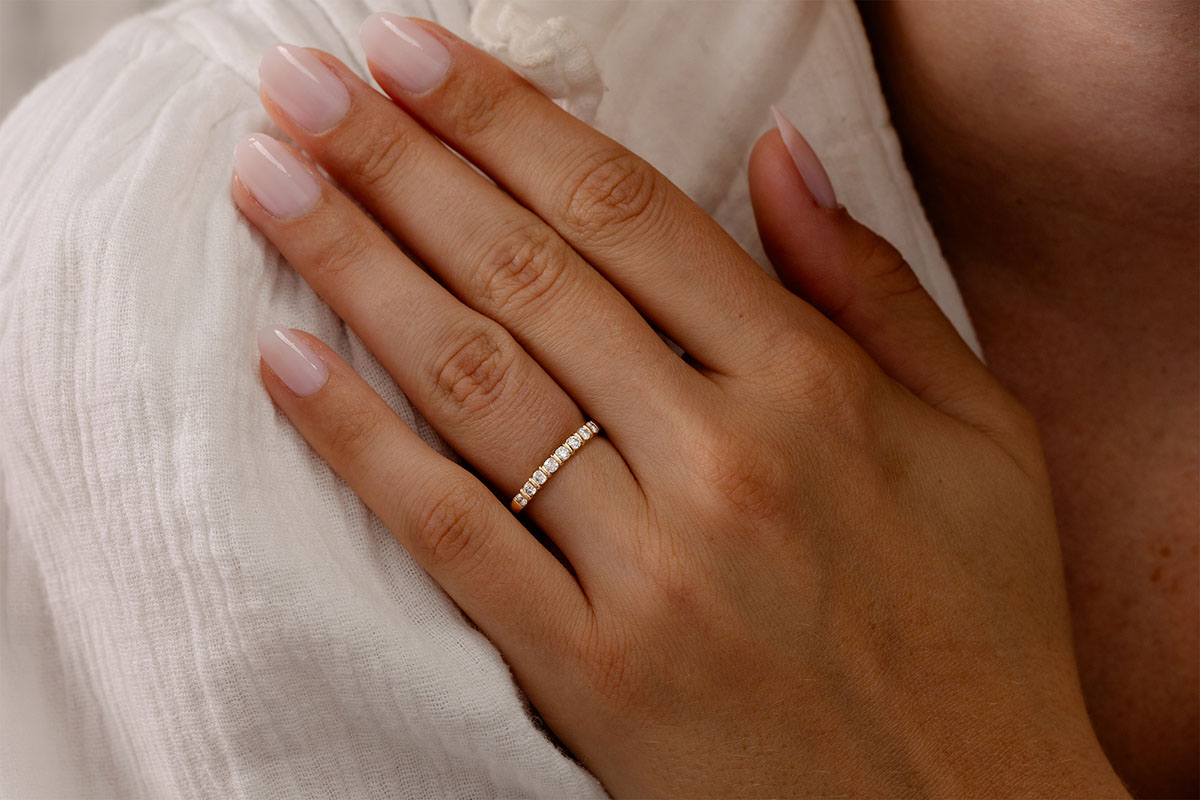 Wedding ring yellow gold semi paved-bar prong setting - 0.3 carat - 8 diamonds