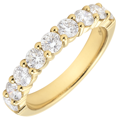 Yellow golden ring crowned with a paving of 9 diamonds, prong setting.