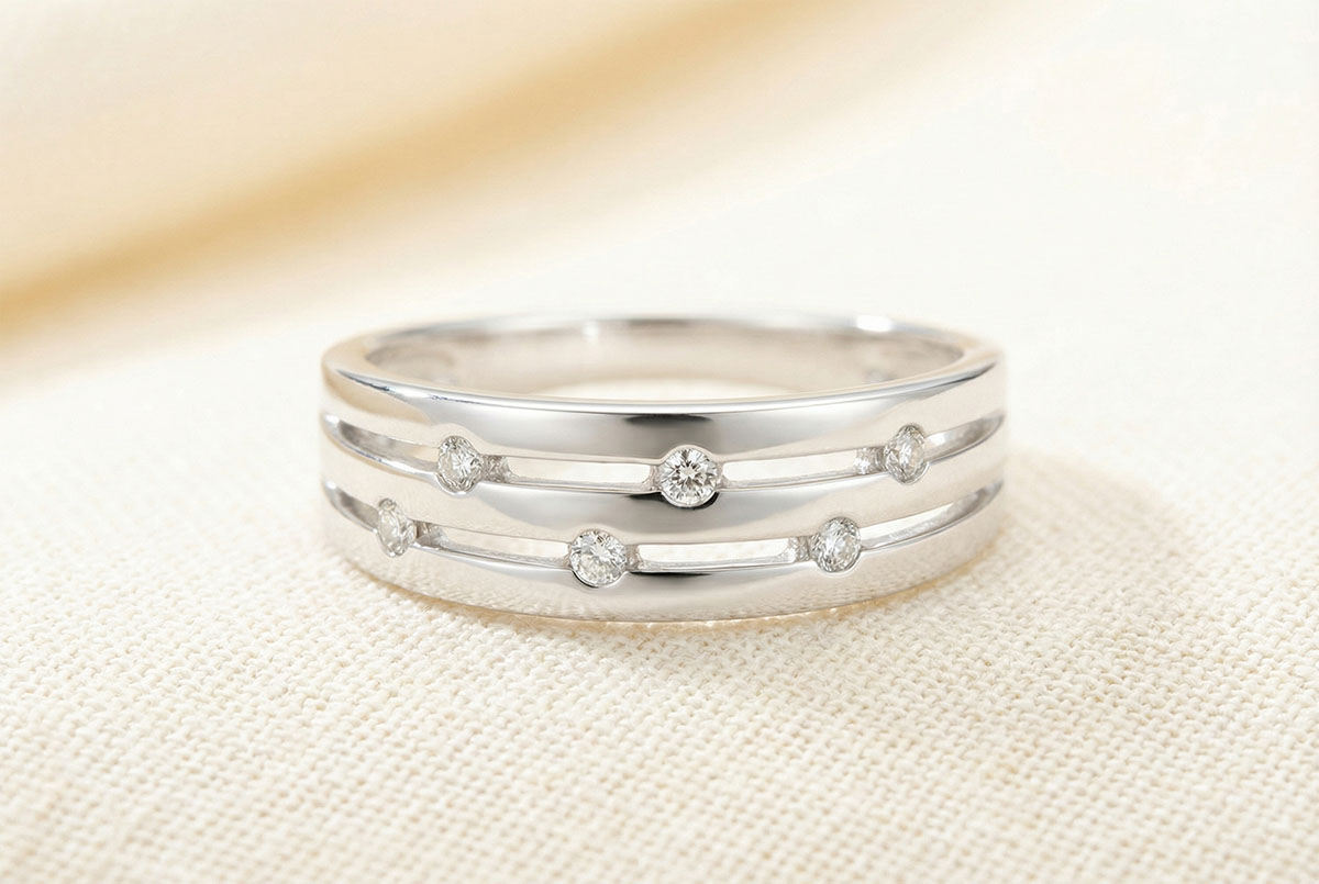 A spread of diamond stars like a Summer evening sky.6 diamonds : 0.09 carat - White gold (18K Gold = 750/-): 1.90 g.