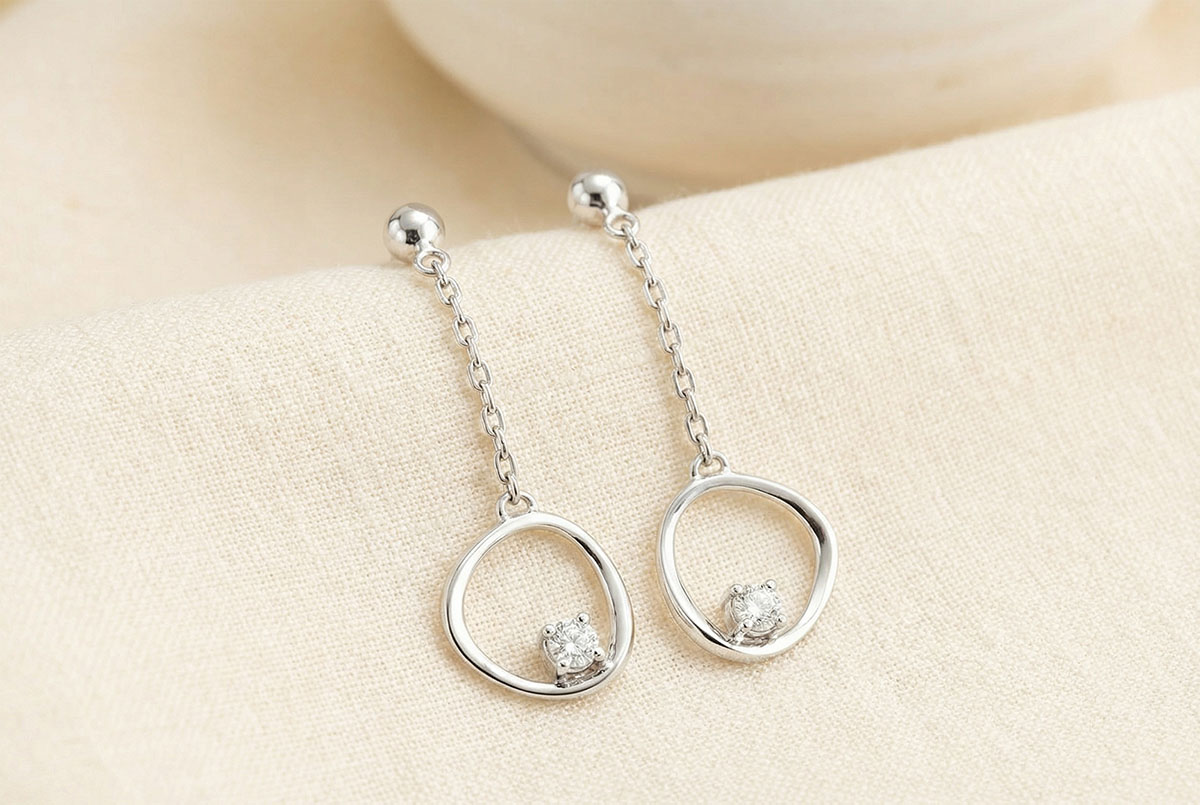2 diamonds : 0.03 carat - White gold (9K Gold = 375/-): 0.8 g.