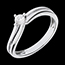 A white gold ring divides into a split shank to hold naked a dazzling solitaire.…