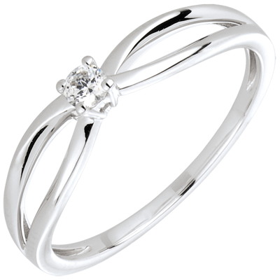 A delicate and modern split shank ring. A setting of white gold throning a diamond at its centre.1 diamond : 0.08 carat - White gold (18K Gold = 750/-): 1.80 g.