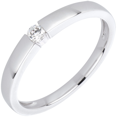 A diamond sits in a white gold setting for a modern and refined solitaire.1 diamond : 0.08 carat - White gold (18K Gold = 750/-): 2.45 g.